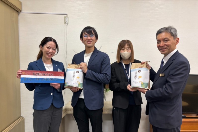 名鉄ホテルグループでは、SDGs活動の一環として「お米作りプロジェクト」を実施し、収穫したお米の内、ホテルミュースタイル犬山エクスペリエンス、名鉄小牧ホテル分を2025年11月21日に「こまき市民活動ネットワーク」様へ、12月5日に「NPO法人シェイクハンズ」様へ寄付いたしました。