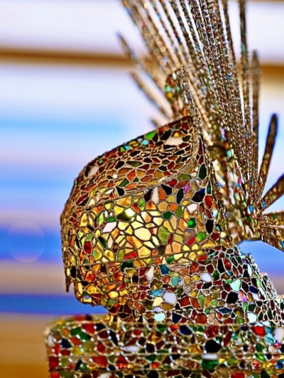 33色・約20,000ピースにも及ぶガラス片を、72のパーツへと組み上げる精緻な技法により、高さ2mを超える圧倒的な造形美を実現しました。