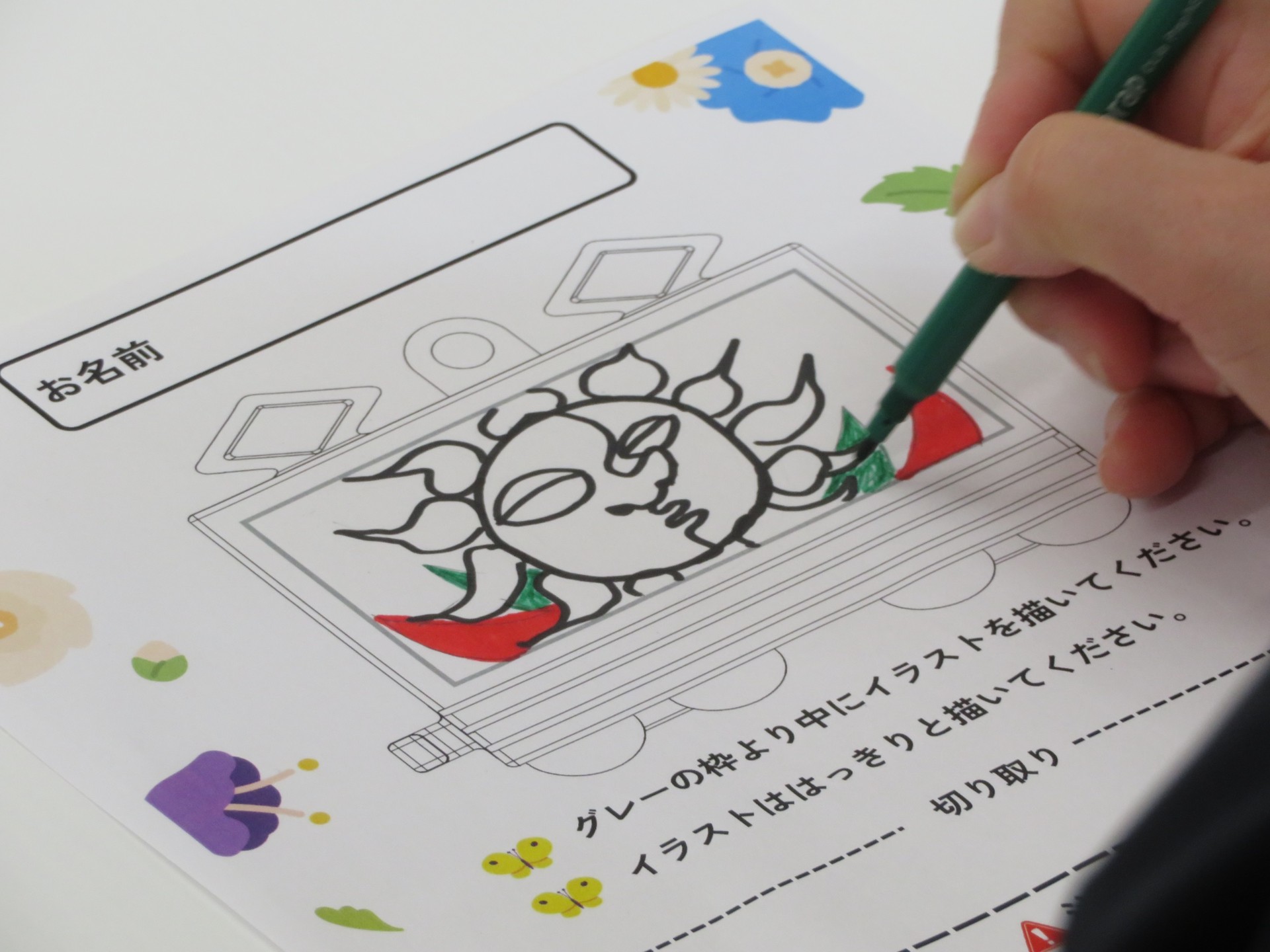 こちらで用意したデザイン用紙にお好きなイラストを描きましょう。描き直しもできますのでどんどん挑戦しよう!